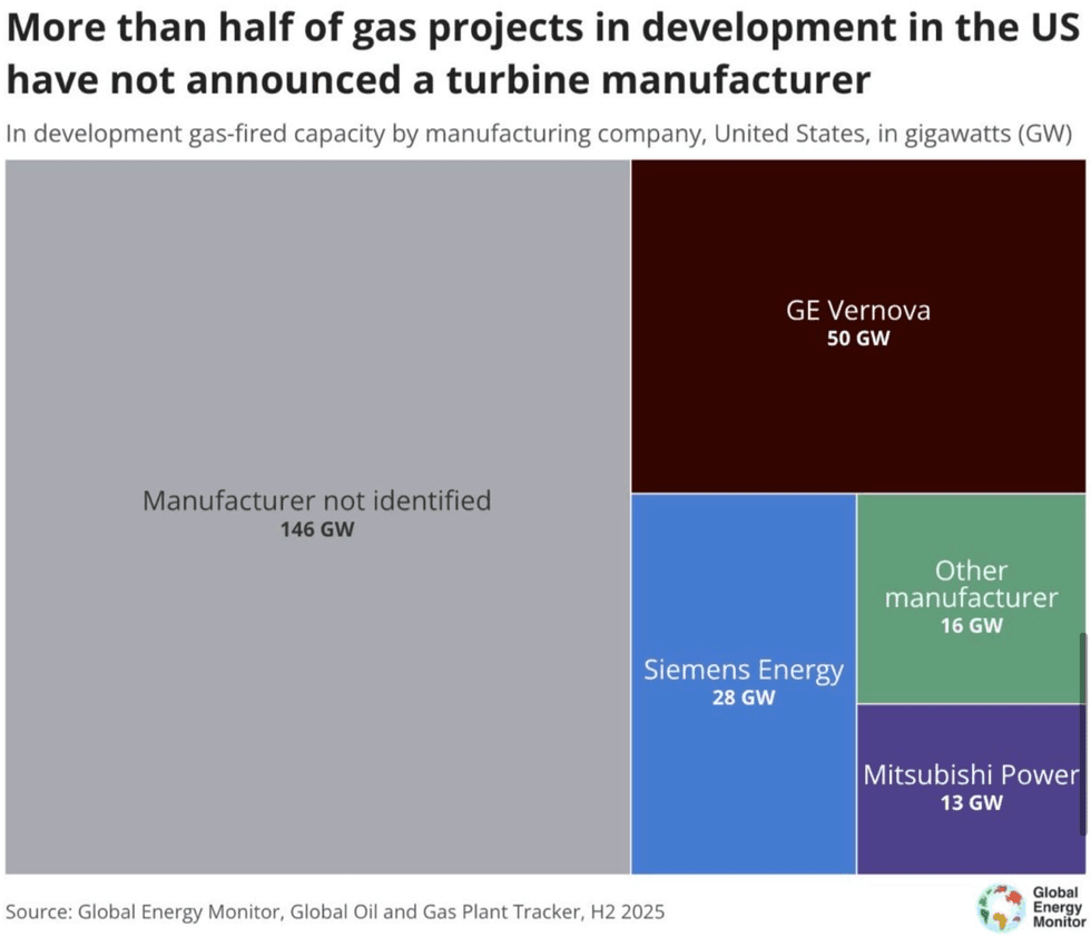 Take a look at the above chart. In the United States, new gas power plants are surging to meet soaring electricity demand. At last count, two thirds of projects currently underway haven’t publicly identified which manufacturer is making their gas turbines. With the backlog for turbines now stretching to the end of the decade, Siemens Energy wants to grow its share of booming demand. The German company, which already boasts the second-largest order book in the U.S. market, is investing $1 billion to produce more turbines and grid equipment. “The models need to be trained,” Christian Bruch, the chief executive of Siemens Energy, told The New York Times. “The electricity need is going to be there.”