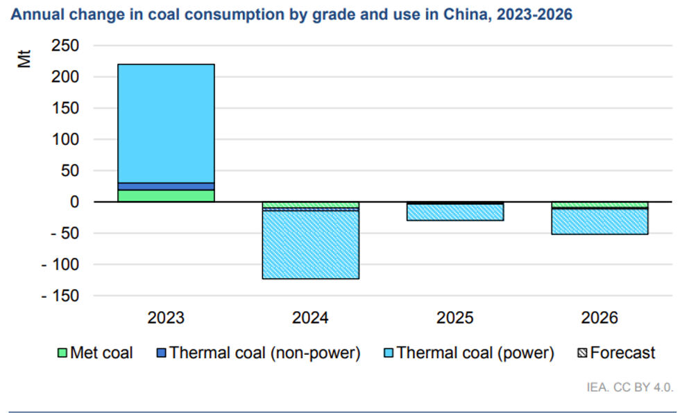 Global demand for coal remains at a record high, but is expected to start declining in 2026, according to the International Energy Agency’s (IEA) “Coal 2023” report. Most advanced economies are ditching this dirtiest of fossil fuels: Coal consumption fell by about 20% in the United States and the European Union this year. But the same cannot be said for China, India, and Southeast Asia, where coal demand is growing. But a turning point could arrive soon, the report says. Global coal demand is expected to fall by 2.3% by 2026 compared with 2023 levels. A lot depends on China, which accounts for 54% of global coal consumption.