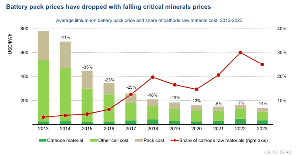 The International Energy Agency is warning of a looming shortage of critical minerals and metals needed for the energy transition and calling for an increase in investment. The IEA’s Global Critical Minerals Outlook 2024 finds that prices for these materials dropped sharply last year to pre-pandemic levels as supply grew faster than demand. This was especially true for battery-pack materials like lithium, which saw a 75% drop in price.