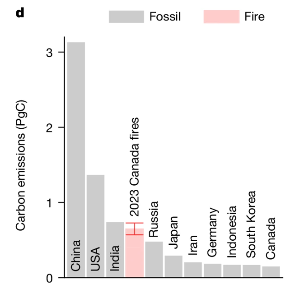 The wildfires that raged through Canada’s boreal forests last year released as much carbon dioxide over just five months as a large country might throughout an entire year, according to new research published in the journal Nature. Just China, the U.S., and India emitted more CO2 than the fires.