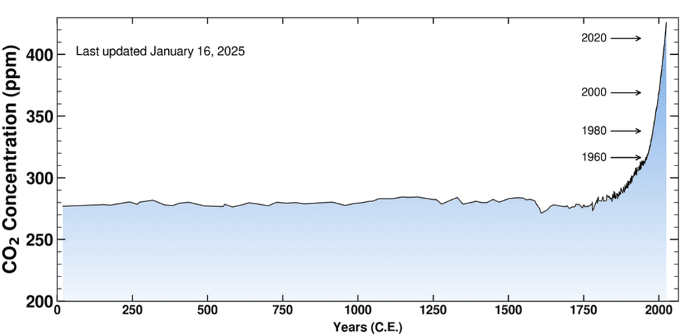 Data from one of the longest-running and most reputable carbon dioxide observatories in the world suggests that atmospheric levels of the greenhouse gas increased at a record rate in 2024. The Mauna Loa observatory in Hawaii has been tracking atmospheric CO2 since 1958, and is “a good guide to rise in global average CO2 concentration,” according to the UK’s Met Office. Mauna Loa’s measurements show that between 2023 and 2024, CO2 concentrations rose by about 3.6 parts per million, the largest annual increase on record, meaning that not only are CO2 emissions still rising, but they’re rising faster than ever. This growth is not compatible with any pathways to limiting global temperature rise to 1.5 degrees Celsius set out by the Intergovernmental Panel on Climate Change.