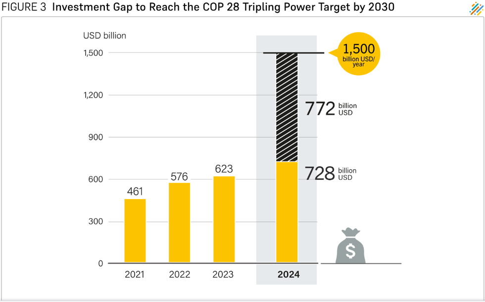 The world added 741 gigawatts of renewable energy capacity last year, according to the new Renewables Global Status Report from Paris-based think tank REN21. That’s a new record, but it still falls far short of the COP28 goal to triple renewables capacity by 2030. In fact, “current trajectories suggest a shortfall of 6.2 terawatts – more than all renewables deployed to date,” the report finds. Here are some other key takeaways: