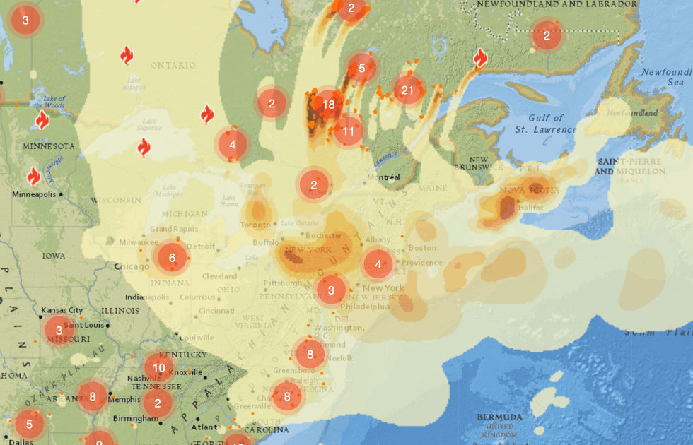 Being closer to the Canadian border, upstate New York has seen some of the most eye-popping AQI readings of the current smoke event: