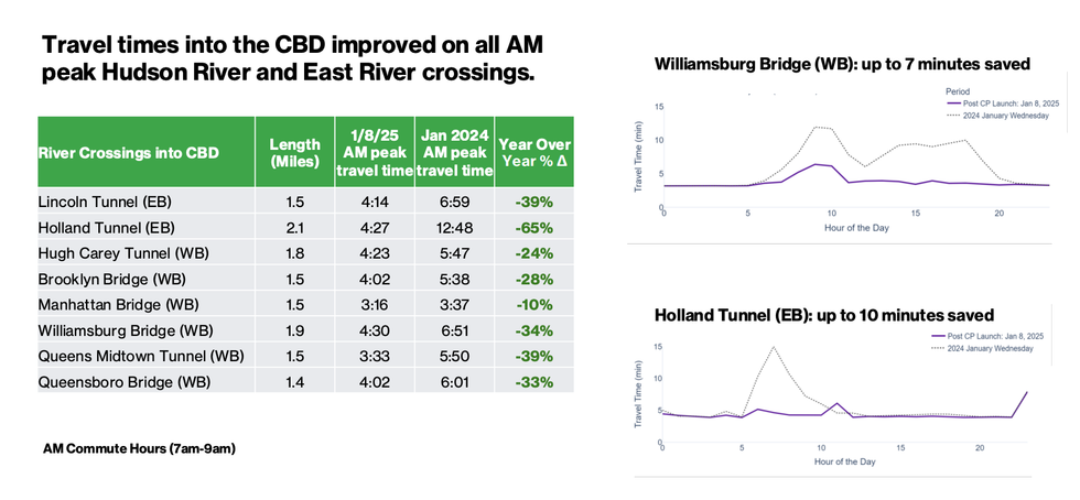 New York won a court order on Tuesday temporarily preventing the Trump administration from withholding funding for state transportation projects if it doesn’t end congestion pricing, Gothamist reports. The toll, which went into effect in early January, charges most drivers $9 to enter Manhattan below 60th street, and has been successful at reducing traffic and raising millions for subway upgrades. The Trump administration has argued, however, that the toll harms poor and working-class people by “unfairly” charging them to “go to work, see their families, or visit the city.”