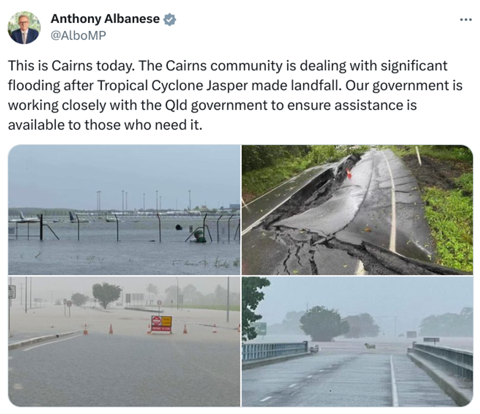 The remnants of Tropical Cyclone Jasper brought intense rain and flooding to several towns in Australia’s northeastern region of Queensland. About 24 inches of rain fell on the city of Cairns in a span of 40 hours, which is more than triple the December average, according to Reuters. At least 12,000 people are without power, and officials are worried residents could lose access to drinking water. Rescue teams responded to more than 350 callouts. “We have people stuck on roofs there that have been there all night,” says Queensland Premier Steven Miles.