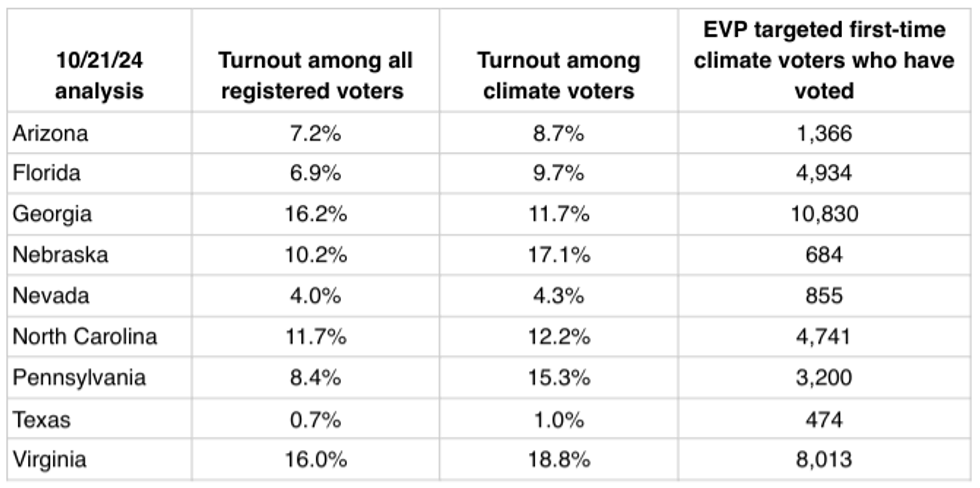 Nearly 50,000 first-time climate voters have already cast ballots in the 2024 U.S. presidential election, according to the nonpartisan nonprofit Environmental Voter Project. By examining early voting data, the group determined that climate voters are turning out at higher rates than the general electorate in key swing states like Pennsylvania, North Carolina, and Nevada. The one exception EVP found is Georgia, where climate voters are underperforming in early voting. “Early voting is not predictive of overall turnout, and so I never get too excited or too despondent from the data,” EVP founder and executive director Nathaniel Stinnett told Heatmap. “But what we can see is that in 18 of our 19 states, people who list climate as their number-one priority are early voting at a higher rate than the overall electorate, so I feel really good about that.”
