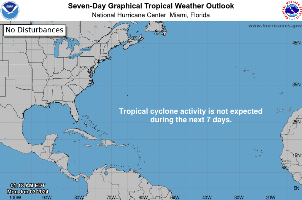 The Atlantic hurricane season started on Saturday, and forecasters are getting nervous as ocean water temperatures remain at record highs and the La Niña weather pattern approaches. Warm waters supercharge storms, while La Niña removes wind shear, which is “one key barrier that can block Atlantic storms,” explained Brian Sullivan at Bloomberg. This morning the World Meteorological Organization (WMO) said there is a 60% chance of La Niña returning between July and September, and a 70% chance that it’ll make an appearance between August and November. “We’ve never had a La Niña combined with ocean temperatures this warm in recorded history so that’s a little ominous,” University of Miami tropical meteorology researcher Brian McNoldy told PBS. Various agencies and experts (including NOAA and Colorado State University) estimate that the number of hurricanes this year could range between eight and 13, compared to the annual average of seven. But for now, the coast is clear: