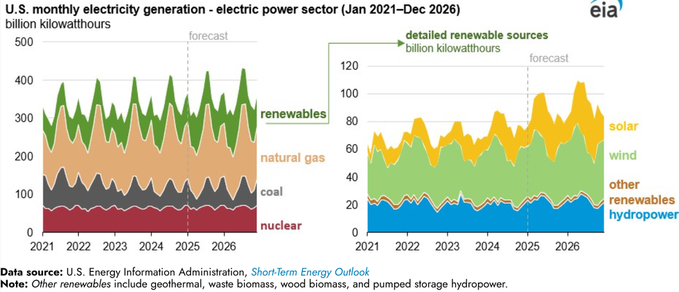 U.S. power generation growth will be led mostly by new solar power additions over the next two years, according to the Energy Information Agency. It expects 26 gigawatts of solar to be added in 2025, down from 37 GW in 2024. Wind power additions are expected to increase by about 8 GW this year, but honestly, who knows. Meanwhile, 6% of coal generating capacity will be removed this year as coal plants are retired. U.S. energy consumption is expected to continue growing at its current rate of about 2% per year through 2026, which would mark the first three years of consecutive growth since the early 2000s.