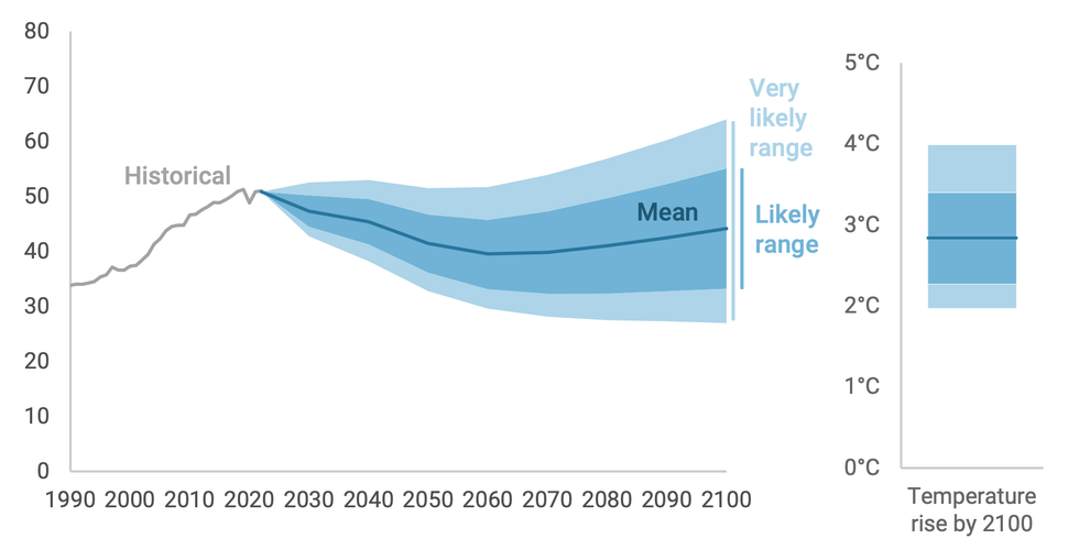 Just as COP28 began, the Rhodium Group, an energy research firm, published a new study looking at how carbon pollution will rise and fall through the end of the century. Unlike other such studies — which ask either how the planet will fare if no new climate policy passes, or what the world must do to avoid 1.5 degrees Celsius of warming — this new study tried to look at what was likely to happen. Given what we know about how countries’ emissions rise and fall with their economies, and when and how they tend to pass climate policy, how much warming can we expect by the end of the century?