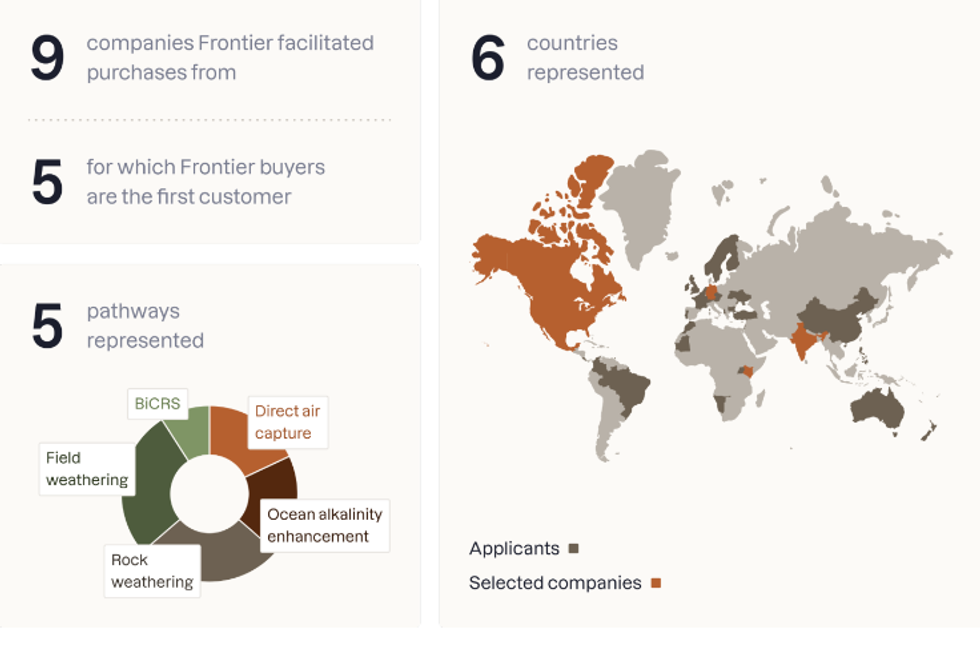 Frontier, a coalition of carbon removal buyers, announced this morning a fourth round of prepurchase agreements, worth $4.5 million. The coalition facilitated agreements with nine suppliers to remove carbon from the atmosphere on behalf of five of Frontier’s buyers: Stripe, Shopify, Alphabet, H&M Group, and Match. The removal projects are located across six countries and utilize a range of techniques, including rock weathering, direct air capture, and ocean alkalinity enhancement. In a press release, Frontier said “a significant number of companies in this purchase cycle are integrating carbon removal into existing large-scale industries. This strategy can reduce costs and accelerate scale-up relative to standalone carbon removal projects.”
