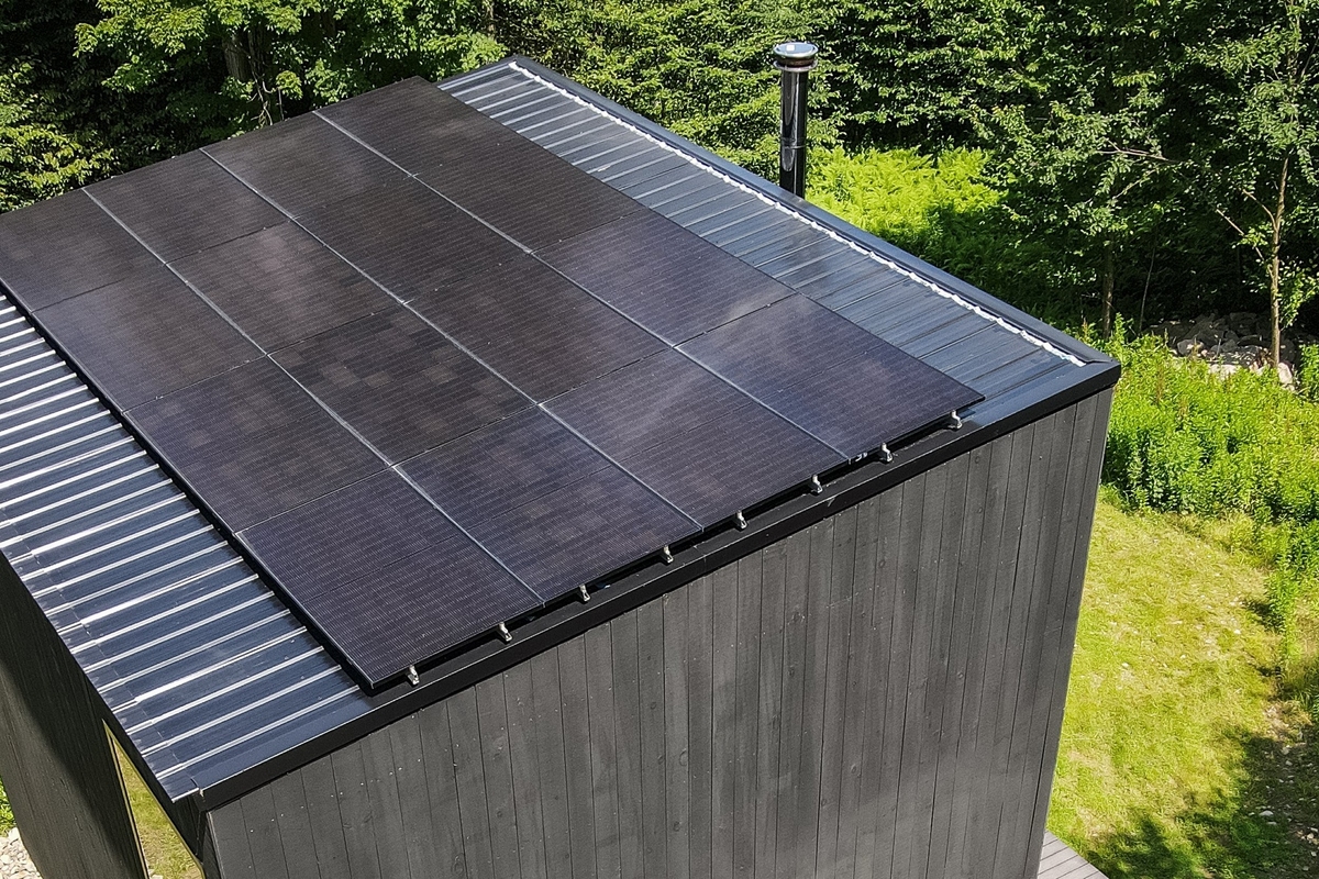 To start, we made the entire house solar-powered. It is not tied to the grid out of the gate. So, a zero dollar energy bill. The panels are all on the roof and are designed to accommodate southern exposure. The solar powers everything — lights, internet, appliances.